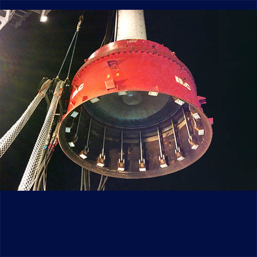 Piling hammer – sleeve assembly. The anvil is the large disk seen here as ‘ceiling’ of the sleeve.